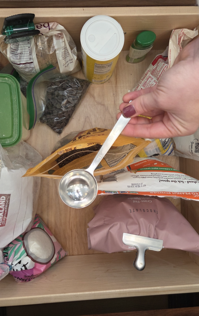 Every morning, I make the same smoothie. Half a banana, ice, protein powder, flax seed, chia seed, sometimes PBfit. And every single morning, I needed a tablespoon. Which meant opening a drawer that someone was inevitably standing in front of, discovering there were no clean tablespoons because the dishwasher didn’t run, opening the dishwasher, rinsing one off, using it, and tossing it back in the sink.